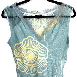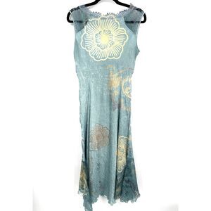KOMAROV Light Blue Silky Lace Textured Fairy Y2K Long Slip Dress Size L Large