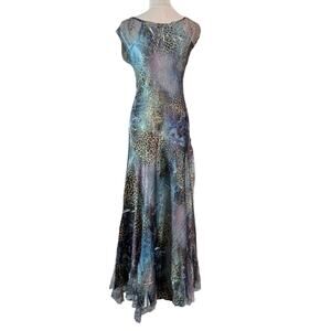 KOMAROV Metallic Mixed Print Maxi Dress Cap Sleeve V-Neck Maximalist Mermaid