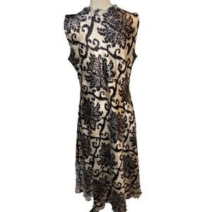 KOMAROV Women's Midi Cocktail Dress size 2X Crinkle Lace Trim V-Neck Whimsygoth