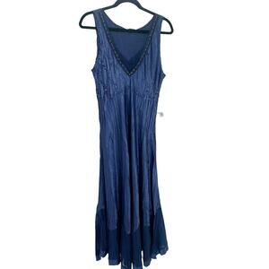 KOMAROV Women's Navy Beaded Charmeuse & Chiffon Tiered Midi Dress Size L NWT