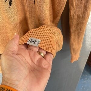 KOMODO women’s tunic length long sleeve sweater, palm tree accent vanity, size 3