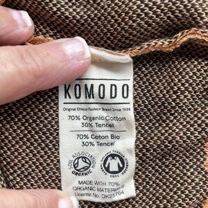 KOMODO women’s tunic length long sleeve sweater, palm tree accent vanity, size 3 oversized, made with organic cotton blend.