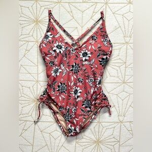 KONA SOL Dusty Pink Floral One-Piece Swimsuit size S