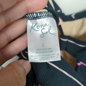 KONA SOL Green Stripe Medium Coverage One Piece Swimsuit Open Back Women's Large