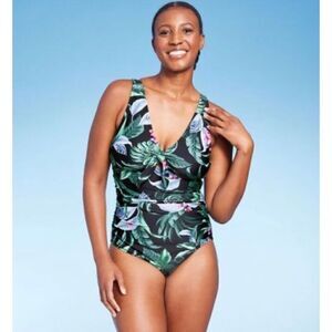 KONA SOL - NWT - L Sz Lg Full Coverage Tummy Control Tie-Front 1-Piece/Tropical