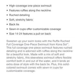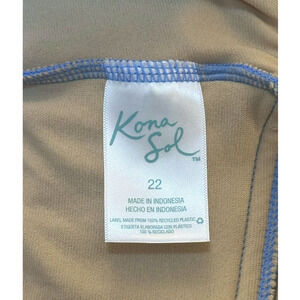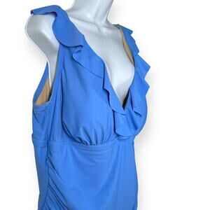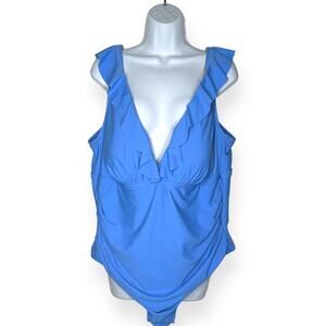 KONA SOL One Piece Bikini Ruched Ruffle Swim V-Neck Full Coverage Blue 22