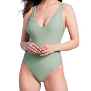 KONA SOL Sage Green V-neck High Leg One Piece Swimsuit