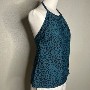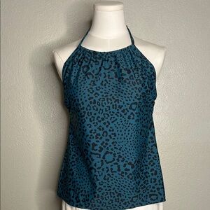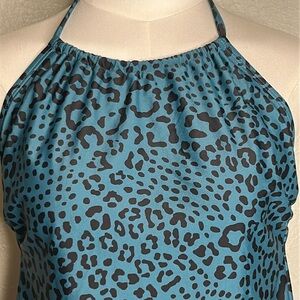 KONA SOL Teal & Black Leopard Print Halter Swimsuit Tankini Underwire Bra Swim Top Medium . Excellent like new . Stylish teal halter top with a bold leopard print. Perfect for a chic and trendy look.