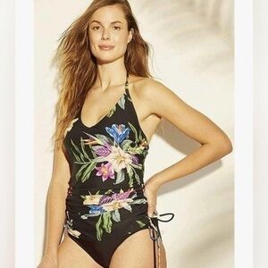KONA SOL Women's Halter Cinch Side floral Tankini top size small