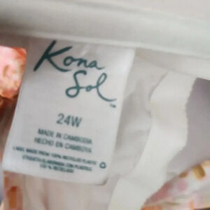 KONA SOL Women's Swim Suit Adjustable Strap Orange Pink Flowers SZ 24W Modest