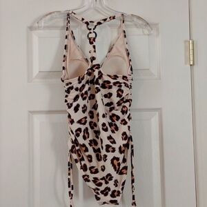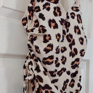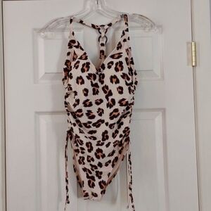 Transform into a summer goddess with the Kona Sol one-piece swimsuit! The shirred sides create a flattering silhouette while the high-cut leg accentuates the length of your legs. The bold animal print gives a fierce touch to your beach look. The halter style adds a touch of elegance while the lightly padded shelf bra provides ultimate comfort and support. Get ready to turn heads this summer with the Kona Sol brand swimsuit!