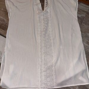 KONA Sol Womens Swim Cover Up Top White Short Sleeve V Neck sz S