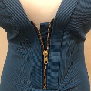 KONA Sol dark teal one piece swimsuit zipper front plunge neckline. Size S