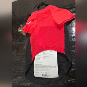 Stylish dog shirt by KONG. Features SPF 40 sun protection. Red and black design.