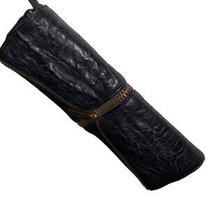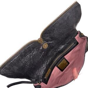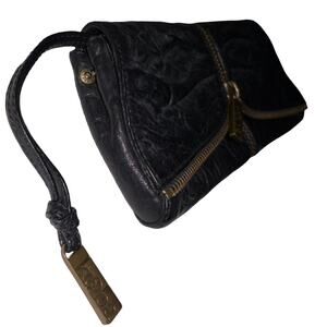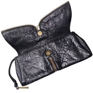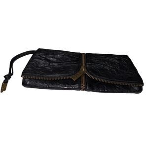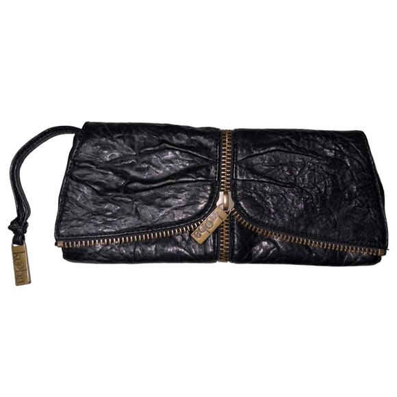 KOOBA Black Textured Leather Zipper Detail Clutch Purse Wristlet