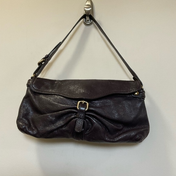 KOOBA Double Buckles Accents Dark Purple Leather Small Shoulder Bag
