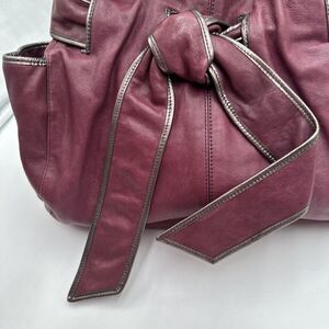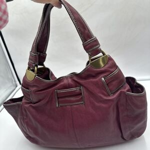 KOOBA Large Leather Shoulder Bag Purse Gold Accent EUC Burgundy Belt Bow
