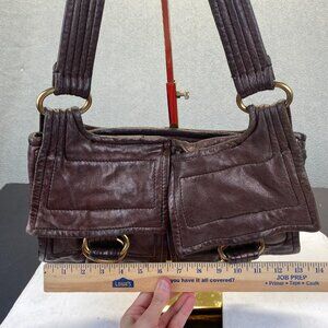 KOOBA Metallic Bronze Leather Baguette Shoulder Handbag ,Preppy,Zipper
