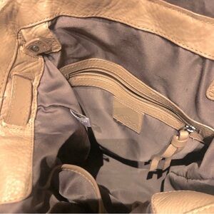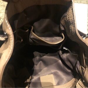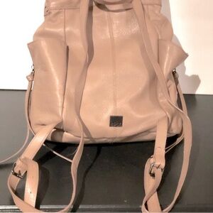 Stylish tan leather backpack perfect for everyday use. Features a sleek design with convenient pockets.