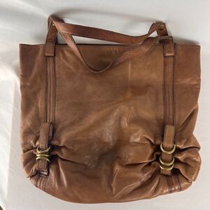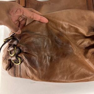 KOOBA Women's Brown Leather Hobo Gold Trim Shoulder Bag Handbag Purse