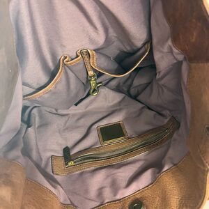 Elevate your style with this stunning KOOBA Women's Brown Leather Hobo Gold Trim Shoulder Bag Handbag Purse. Crafted from high-quality leather, this large satchel/top handle bag is perfect for any occasion, be it travel, casual outings, or business meetings. The bag features a beautiful brown exterior color with gold trim and a purple lining color that adds a touch of elegance to your belongings. The bag comes with a 19" leather strap drop that makes it easy to carry around. With its unique design and durable material, this KOOBA Women's Bag is a must-have for any fashion-forward woman.