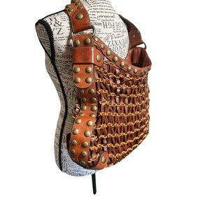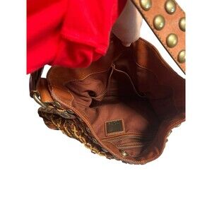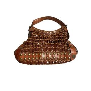 KOOBA Woven Leather and Rope Studded Brown Shoulder Hobo Handbag Purse