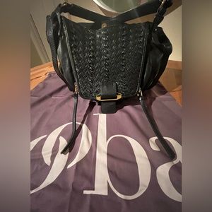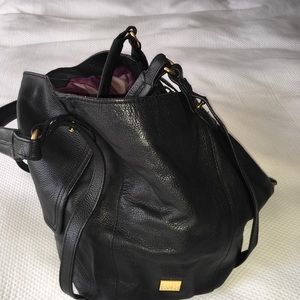 KOOBA, black buttery soft leather, pristine excellent condition. Perfect for everything you might fit into it, iPAD, phones, cases... lots of pockets, outside zipper pocket, clean interior, 10x14x5