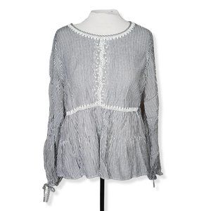 KOOKAI PARIS Blue Cotton Striped Embroidered Cottagecore Peasant Top