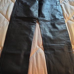 KOOKIE MENS LEATHER PANTS, the size of the waist is 36 and the inseam length is up to 38 as the length cuff is unfinished. You do not need to finish the bottom cuff as you can just cuff them under depending on the type of shoes or boots you are wearing. These pants have a button up fly similar to 501's.