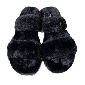 KOOLABURRA BY UGG FUZZ ON FAUX-FUR SLIDE ON BLACK SANDALS