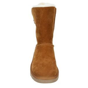 The Ramley Mini from Koolaburra by Ugg gives wearers a classic ugg look with a stylish shaft design. The fleece lining and suede upper create coziness while the back stretch band allows for an easy pull on and pull off. This suede ankle boot will pair perfectly with a chunky sweater and a printed scarf!