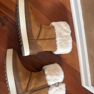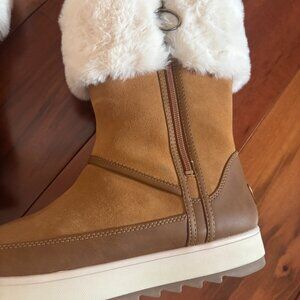 KOOLABURRA BY UGG TYNLEE BEIGE SUEDE FUR CUFF SIDE ZIP WATERPROOF BOOTS SZ US 9