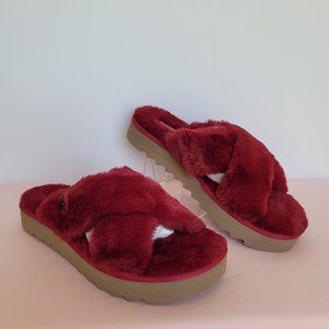 KOOLABURRA BY UGG Women’s Fuzz-It Faux-Fur Slipper Sandals-Berry color. Size 9M⭐