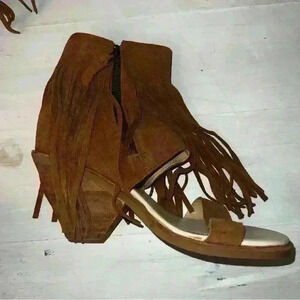KOOLABURRA Piaz II Chestnut Suede Fringe Heel Sandals/Ankle Boot Zip Sz 6.5