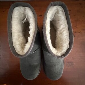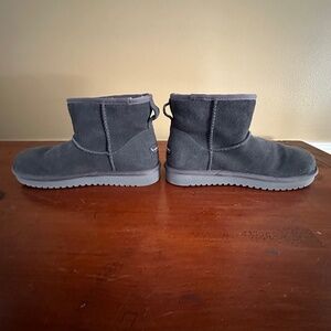 Nice pair of women's Koolaburra by UGG ankle boots, only worn once. Suede Stone Grey color, cream faux fur lining. Size 7, shows a little bit of wear. Please see photos for further description.