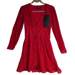 THE KOOPLES SZ2 NWT burnout Velvet texture Red Leopard V neck Buttondown sexy dress. Fit n Flare. Minidress. Stylish. Standout. Romantic. Date night. Cruise. Long sleeve. Must see All pictures for the details and measurements. Offers Welcome. Ships Fast.