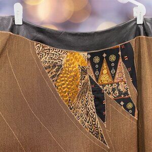 KOOS OF COURSE Art to Wear Plus Size Brown Tweed Full Length Skirt with Animal Print Patchwork and Black Leather Trim Along the Top Front. A unique statement piece for your next special event! NWT, never worn.