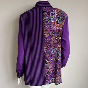 KOOS Of Course 100% Silk Shirt Top Blouse Sz Small Purple Boho Artsy Halloween