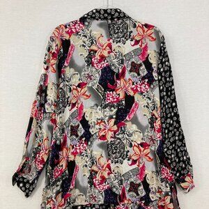 KOOS Of Course! Black Pink Floral Pure Silk Artsy BloomCore Button Down Tunic 1X