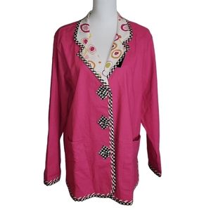 KOOS Of Course Pink Linen Blend Geometric Print Reversible Blazer Jacket Sz L