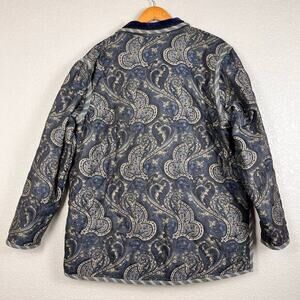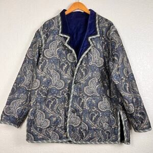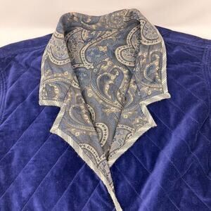 KOOS of Course Womens Jacket XL Blue Velvet Reversible Quilted Paisley READ