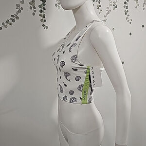 Sustainability never looked so stylish. Case in point: our bandana print sports bra, designed with a sleek high neck, contrast panels, maximum support, and of course, crafted from our signature, eco-friendly Koral Blackout™ fabric.Size and care tag has been cut to prevent store return