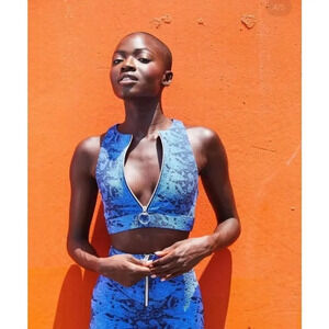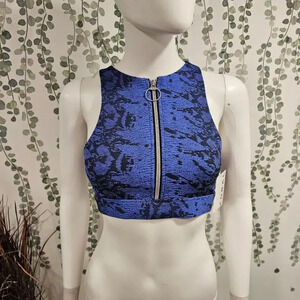 This is a brand new with tags size small women's KORAL blue snake print zip front sports bra top.Care and size tag has been cut to prevent store return