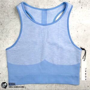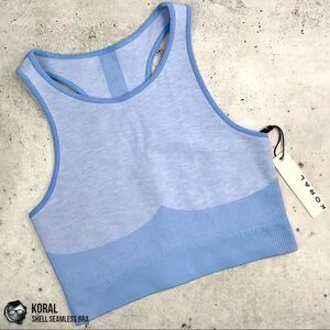 KORAL SHELL SEAMLESS SPORTS BRA BEL AIR BLUE RACERBACK CROPPED TANK SIZE SMALL