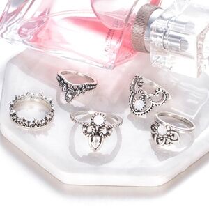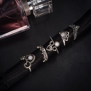 **KORDULA* 5-Pc Vintage Silver Gem Fashion Ring Set