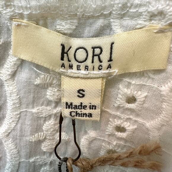KORI AMERICA | Blue Boho Peasant Top Lace Eyelet Trim NWT | Small