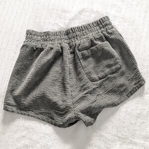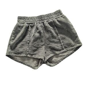 Army green cordoury shorts with front seams, back pocket, mid rise, elastic waist band.
