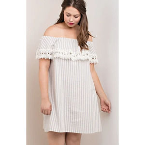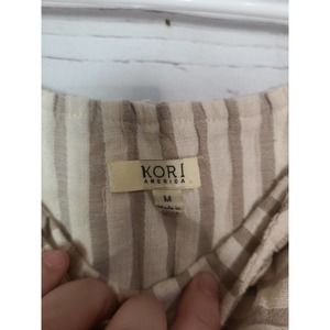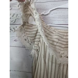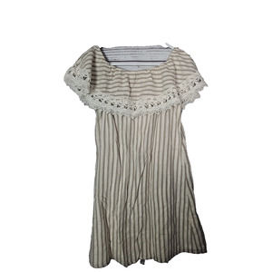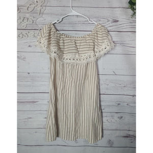 KORI America Tan Striped Crochet Off the Shoulder Mini Dress Womans Size Medium. Pre-owned