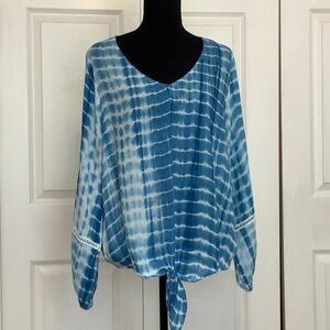 KORI America women’s blouse tie dye drop shoulder v-neck boho Size S