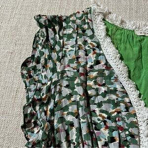 KORI Green Multi Color V-Neck Hi-Li Dress Lined Fringe Lace Flutter Boho Wmn S